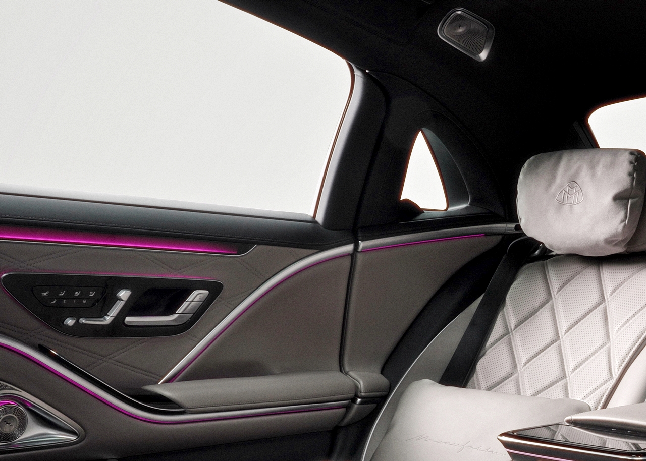 - Badan kereta panjang dikontras dengan rim jejari Maybach 21 inci.