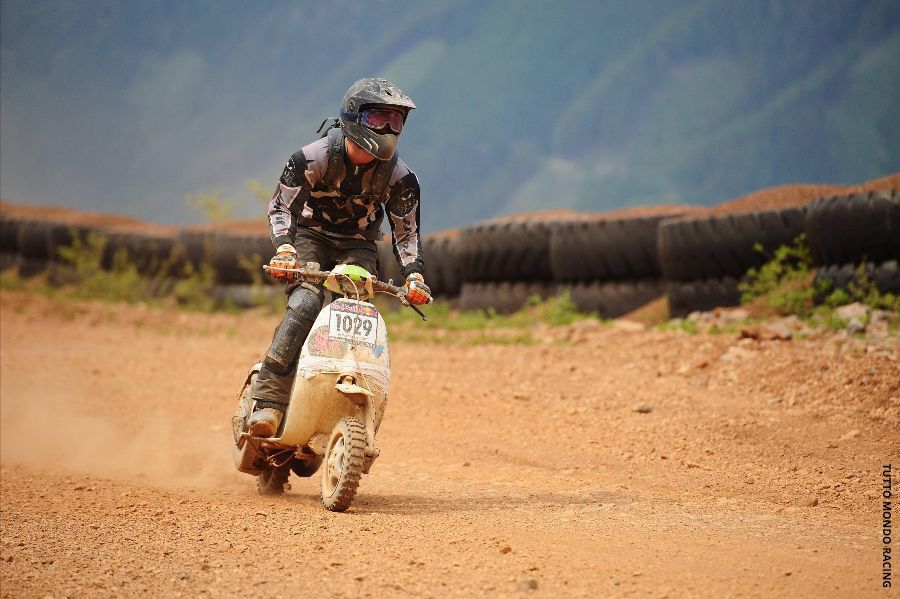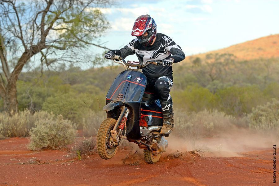 Skuter Vespa menjadi jentera lumba dua pelumba itu sudah menjalani proses pengubahsuaian minimum seperti pemasangan plat gelincir (skid plate), tayar off-road dan sistem suspensi dinaik taraf.