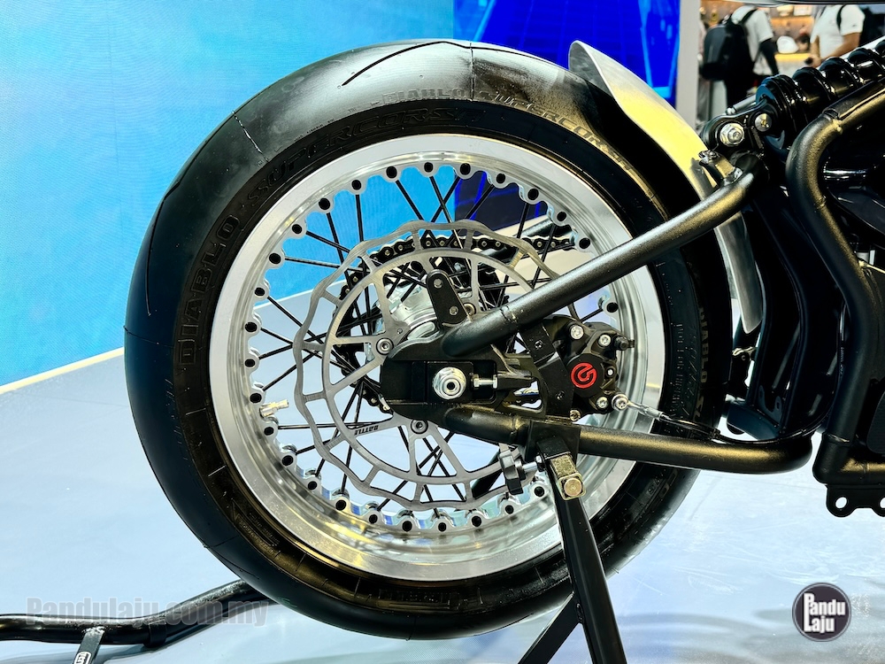 - Rim aloi 16 inci dengan tayar 130/90 di depan, dan 150/80 (belakang).