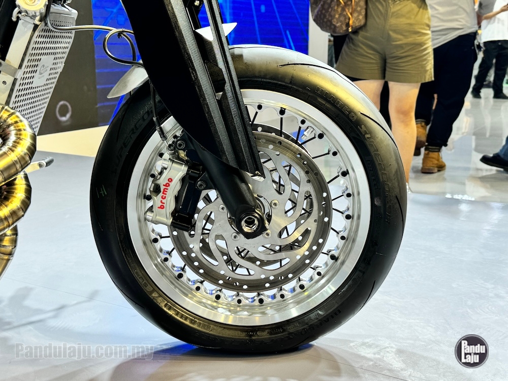 - Rim aloi 17 inci dengan tayar 120/70 di depan, dan 160/60 (belakang).
