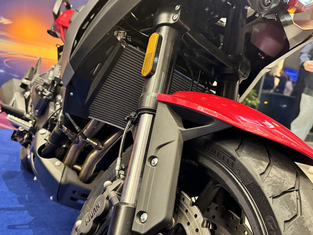 - Sistem suspensi fork terbalik (USD) di depan, dan monoshock sebelah (belakang, kanan).