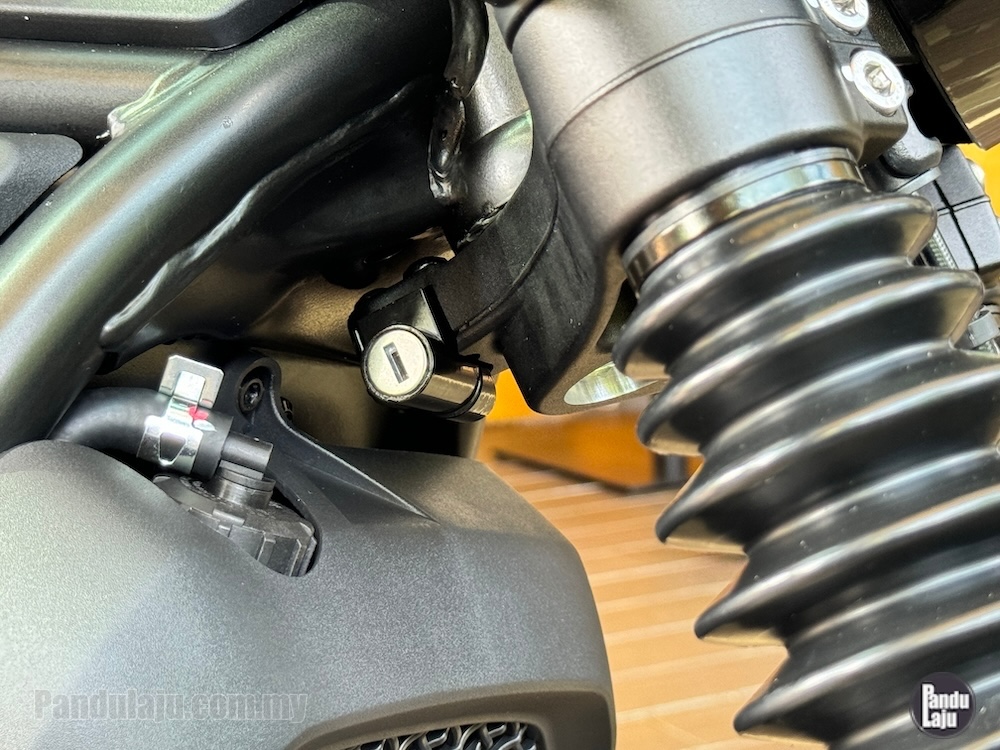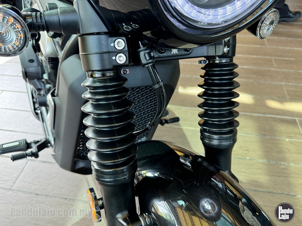 - Frem daripada tiub keluli dengan swingarm kembar.