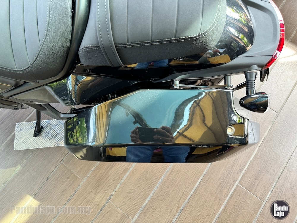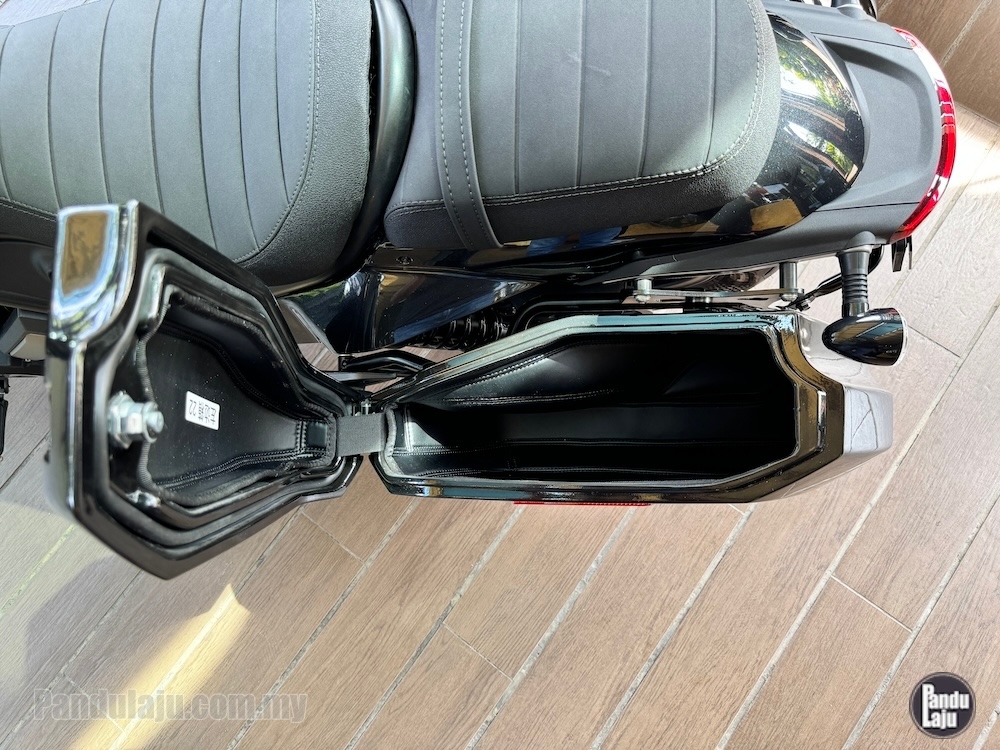 - Ada dua kotak simpanan di sisi belakang sebelah kiri dan kanan. Setiap satu kotak simpanan berkapasiti 20 liter.