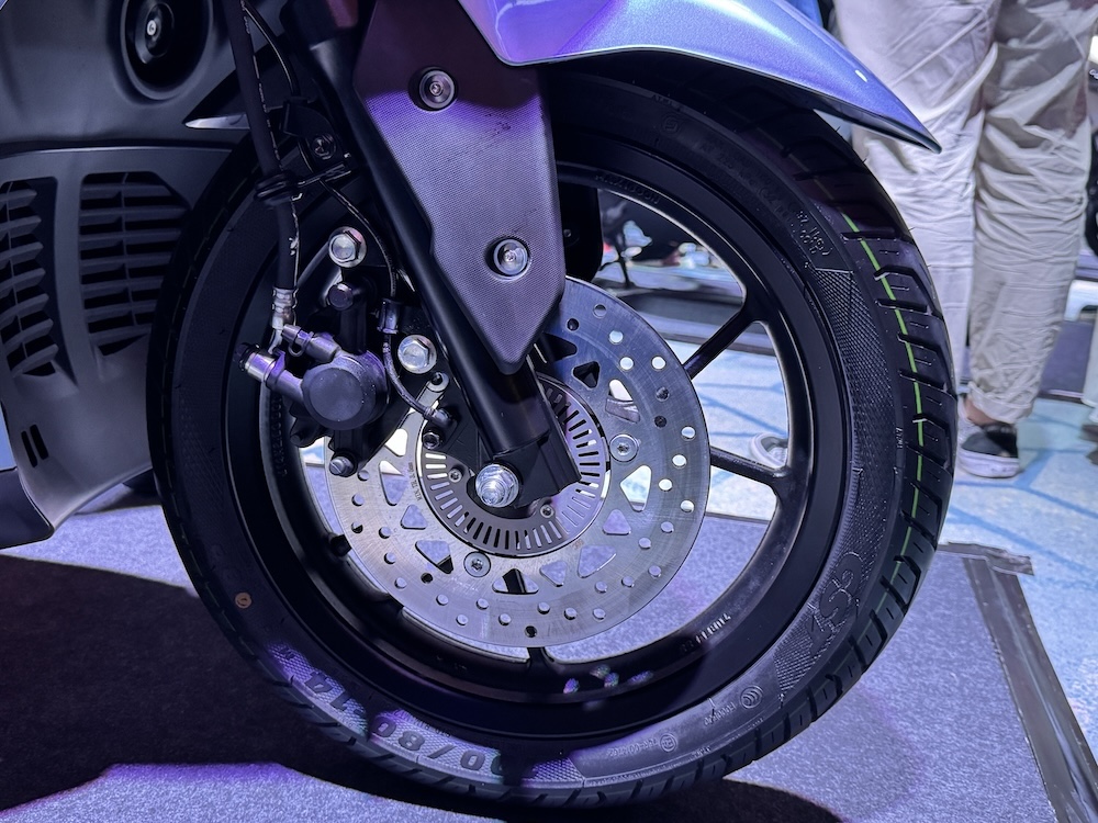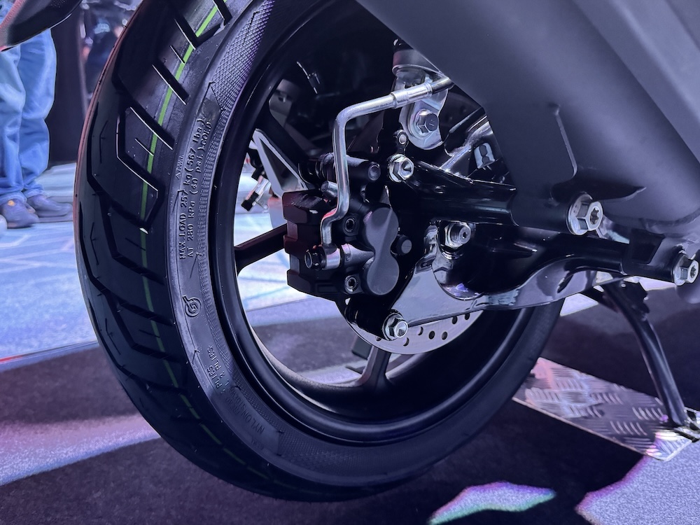 - Rim aloi 14 inci dengan tayar 100/80 (depan) dan 120/70 (belakang)