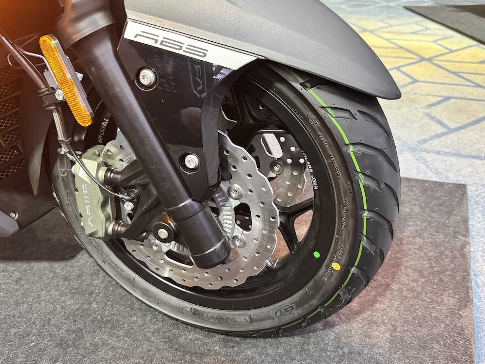 - Tayar depan 14 inci dengan tayar 120/70 (depan) dan rim belakang 13 inci dengan tayar 150/70 (belakang).