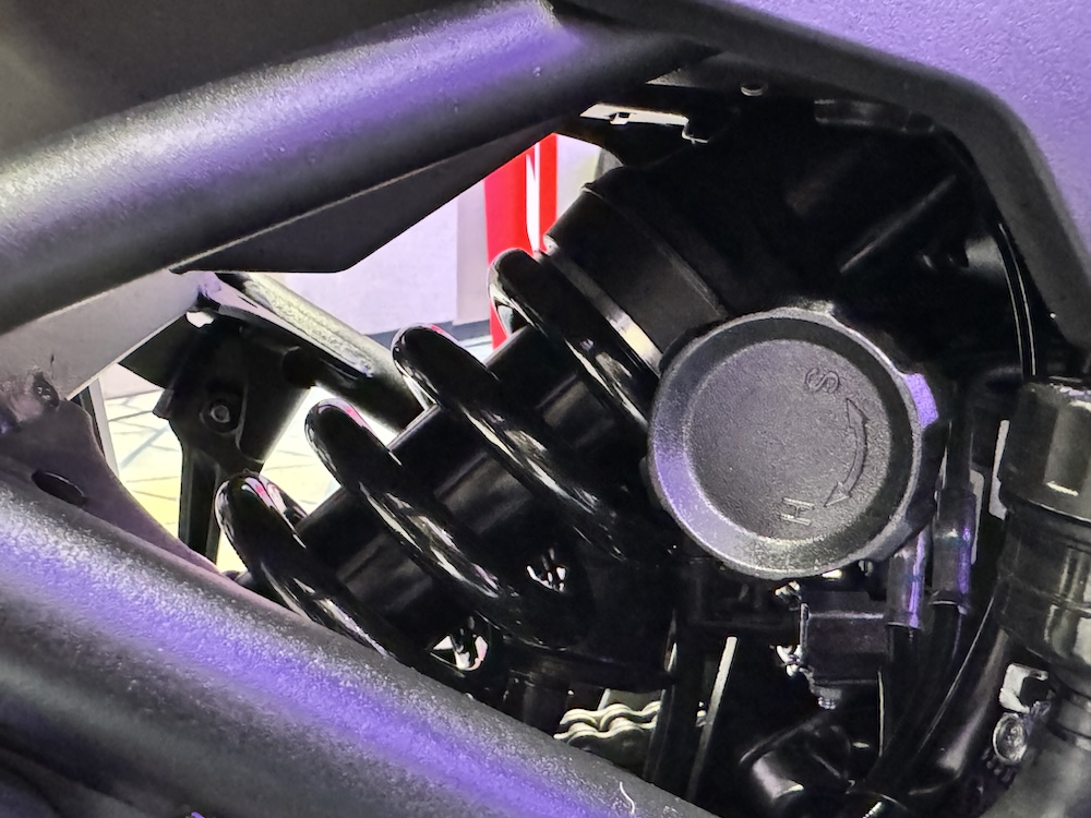 - Sistem suspensi fork depan terbalik (USD) di depan dan monoshock boleh laras (belakang).