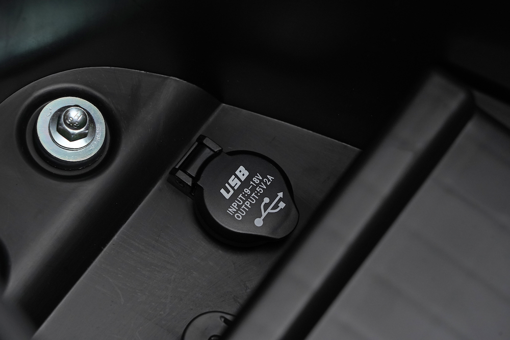 - Ada soket USB dalam ruang simpanan bawah pelana.