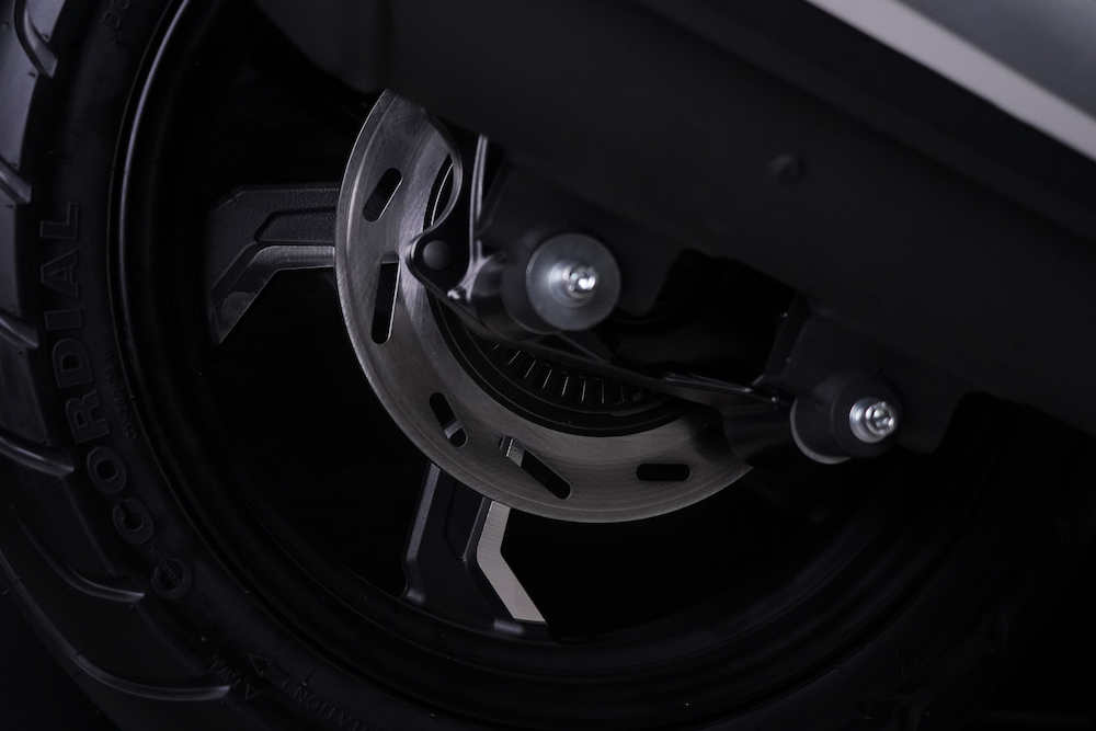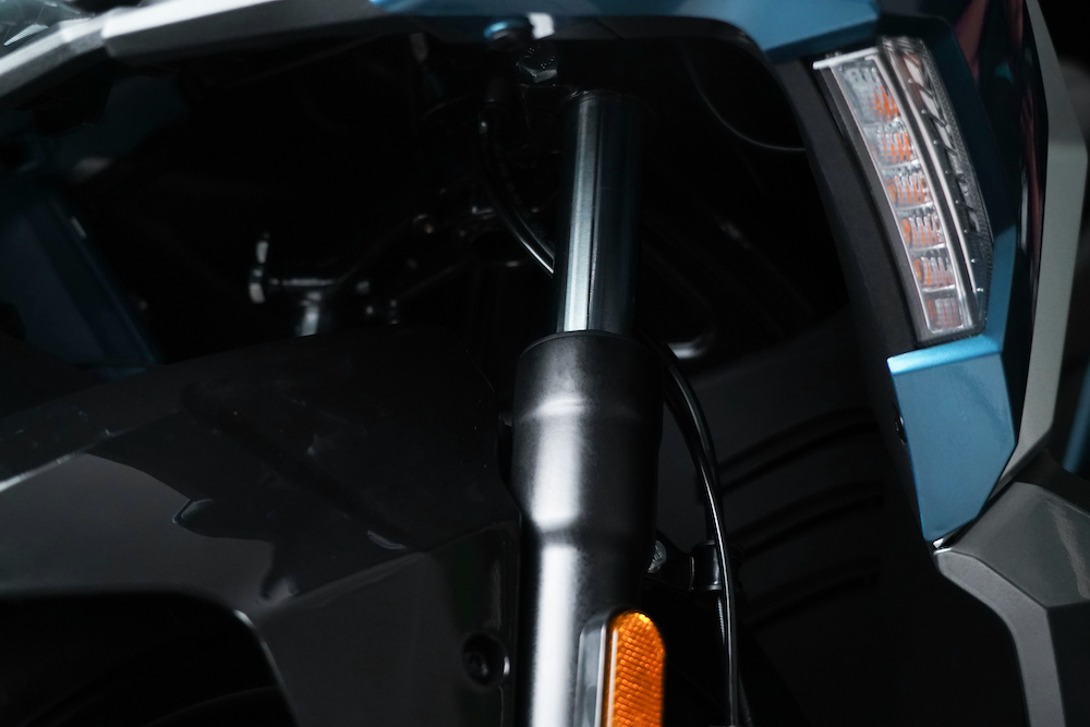 - Brek cakera tunggal pada kedua-dua roda dengan Sistem Brek Anti-Kunci (ABS) dwi-saluran.