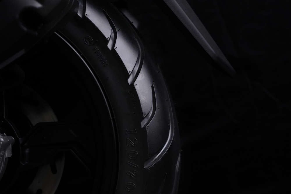 - Set rim aloi 14 inci dengan tayar saiz 100/80 (depan), dan 120/70 (belakang).