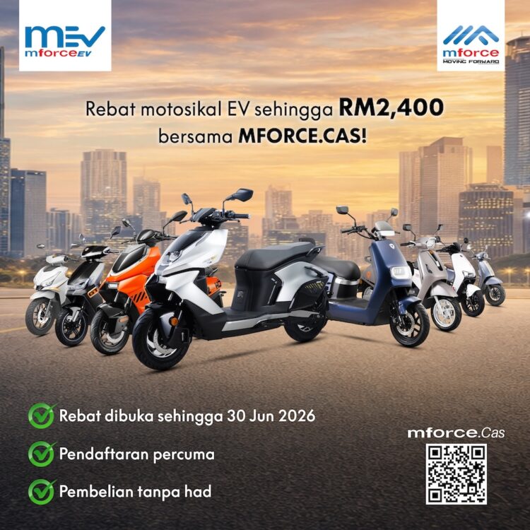PENGEDAR motosikal, Mforce Bike Holdings Sdn. Bhd. memperkenalkan program Mforce.Cas, satu inisiatif baharu yang menawarkan rebat sehingga RM2,400 bagi pembelian motosikal elektrik terpilih untuk rakyat Malaysia.