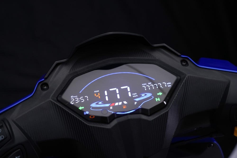 - Panel meter digital berwarna. Ini juga model pertama dalam segmen kapcai 125cc dilengkapi ciri tersebut.