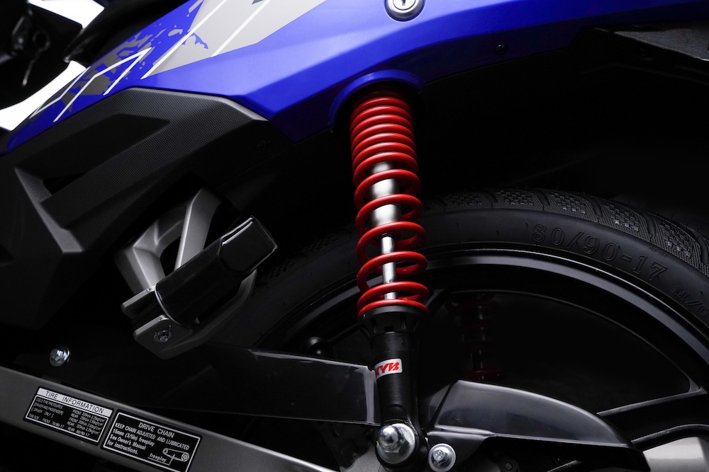 - Rim aloi 17 inci dengan tayar 70/90 (depan), 80/90 (belakang).