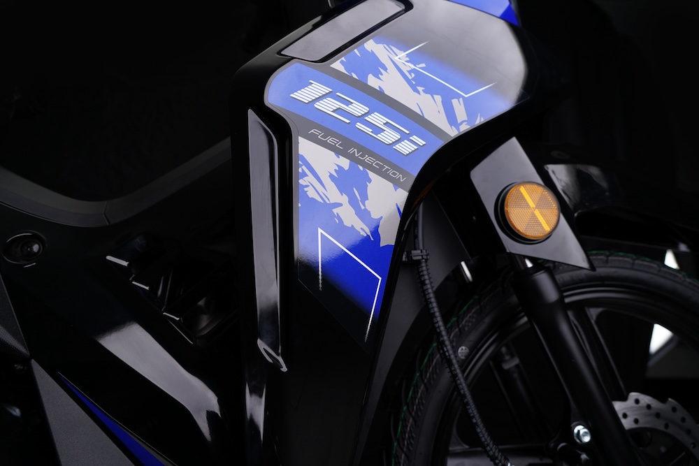 - Enjin 4-lejang silinder tunggal 123.7cc SOHC penyejukan udara dengan sistem suntikan bahan api (FI), menawarkan output kuasa 7.8hp @ 8,000rpm dan tork 8.5Nm @ 6,000rpm.