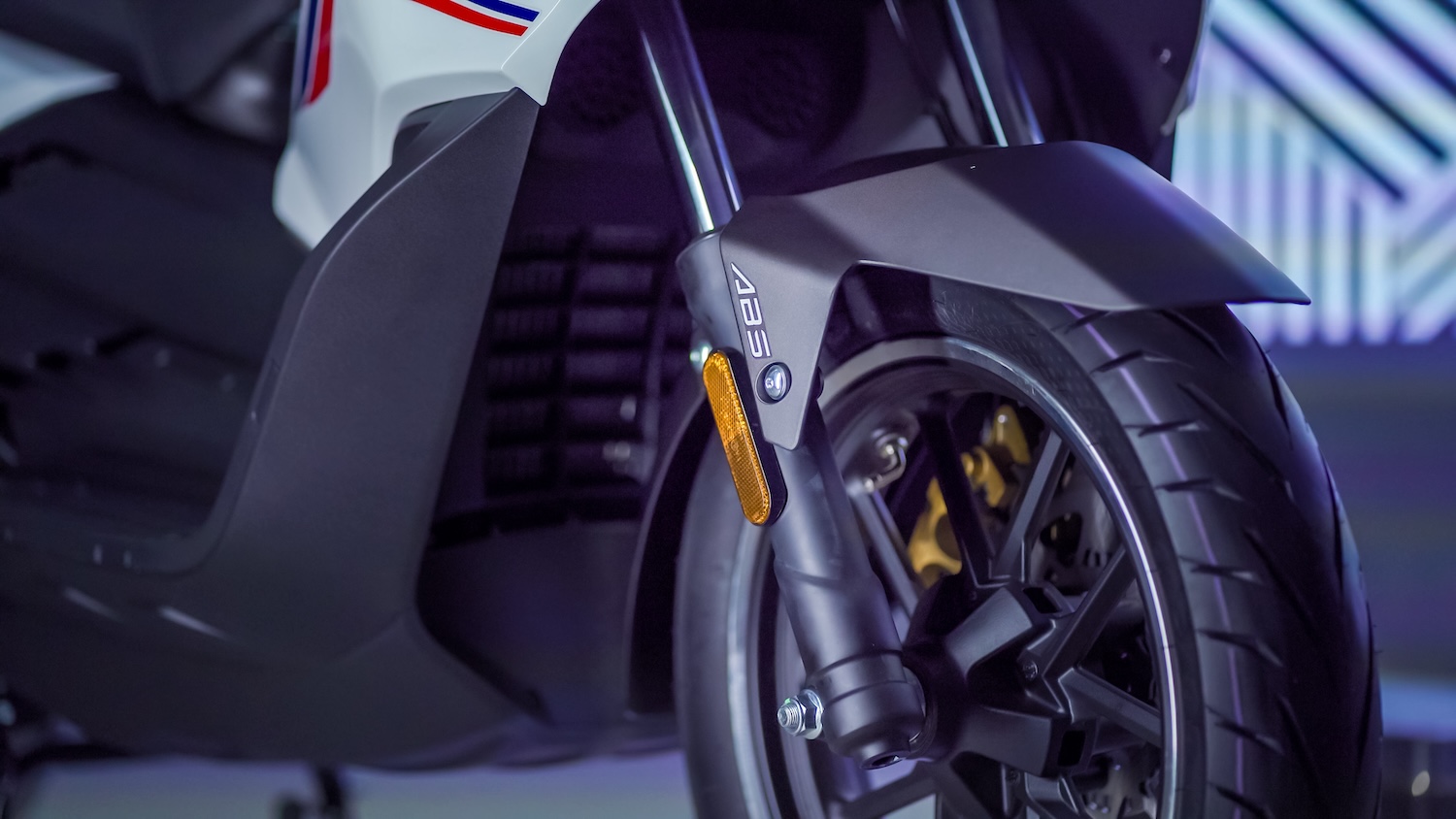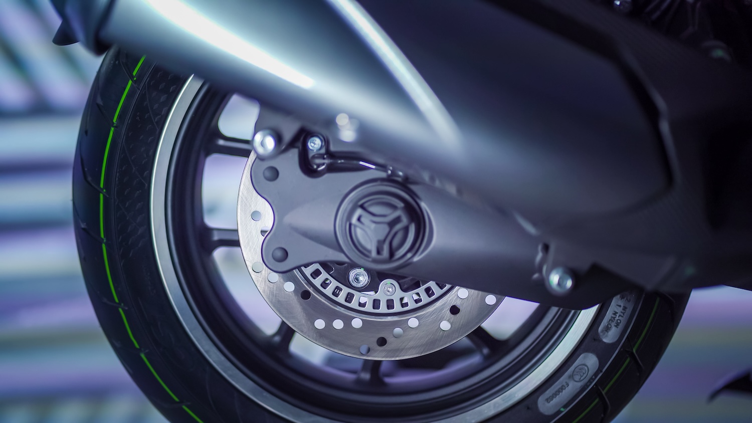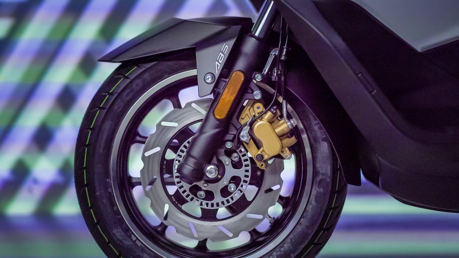 - Brek cakera tunggal untuk kedua-dua roda dengan Sistem Brek Anti-Kunci (ABS) dwi-saluran.