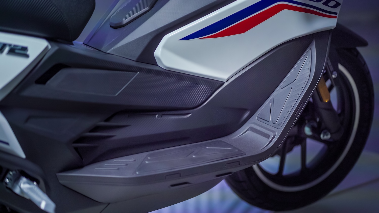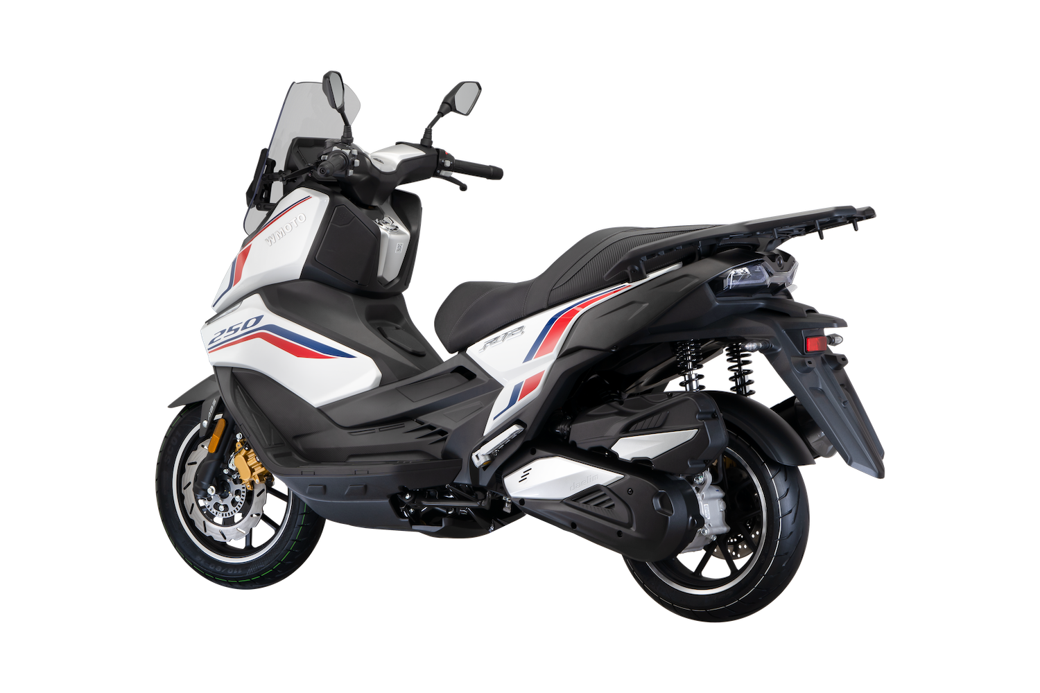 Skuter maksi ini yang sesuai untuk tunggangan harian yang didatangkan dalam tiga warna pilihan, iaitu Metallic Gold (emas), Pure White (putih) dan Majestic Black (hitam).