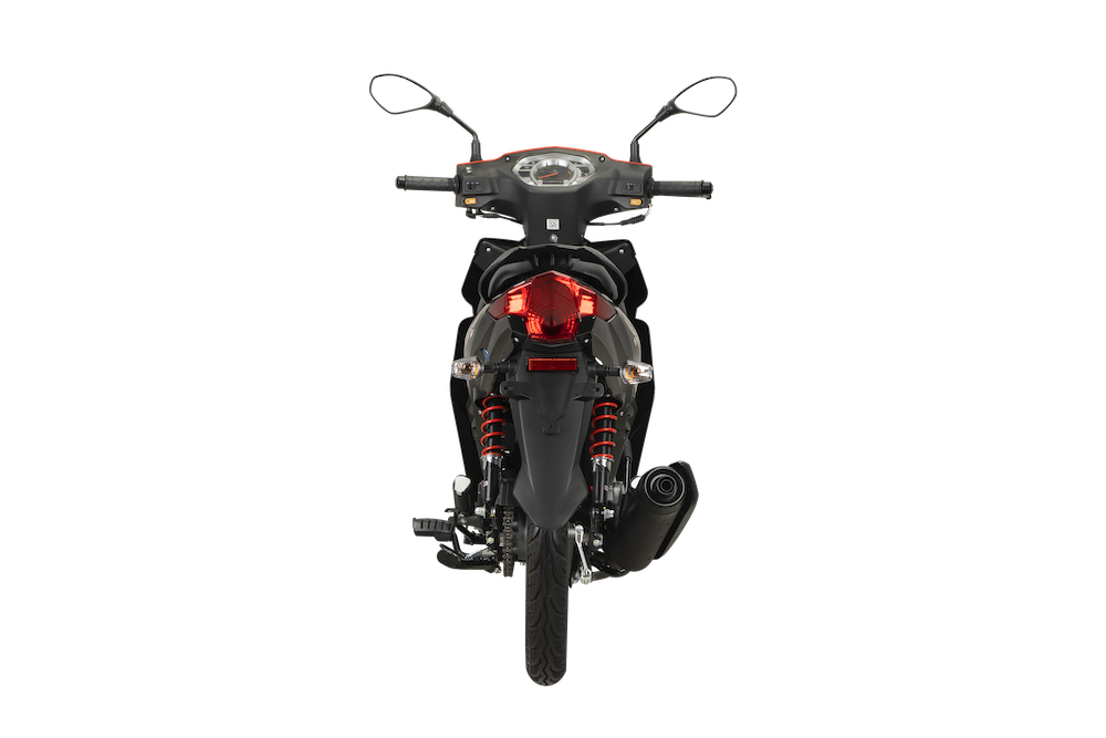 Sistem suspensi menggunakan fork teleskopik konvensional di depan, dan dwi-absorber (bekalang), manakala bahagian roda dipasangkan aloi 17 inci yang dibalut tayar saiz 70/90 di depan, dan 80/90 (belakang).