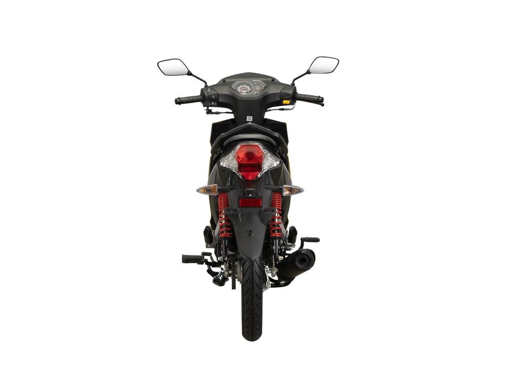 Dijana enjin 4-lejang 2-injap silinder tunggal 109cc berkuasa 6.03hp @ 7,500rpm dan tork 7Nm @ 5,000rpm. Sistem suspensi fork teleskopik konvensional di depan dan dwi-absober (belakang).