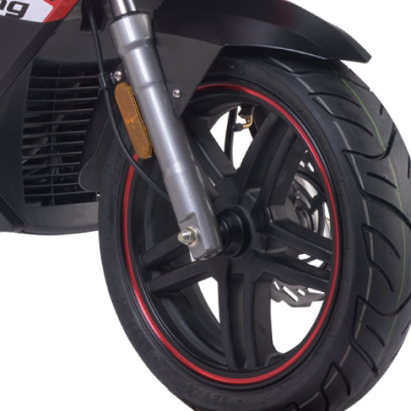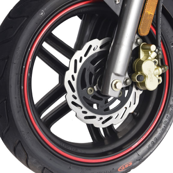 - Rim 13 inci dibalut tayar 120/60 (depan) dan 130/60 (belakang).