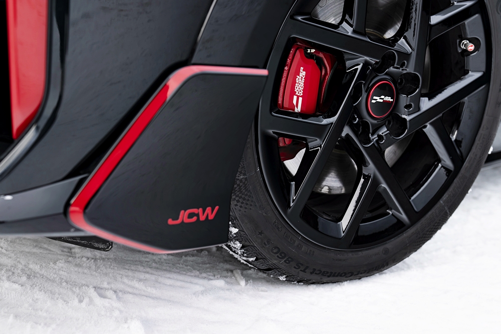 - Lagi, penutup hab mengekalkan logo JCW pada posisi melintang walaupun rim 17 inci JCW Star Spoke berputar atas jalan raya atau permukaan salji.