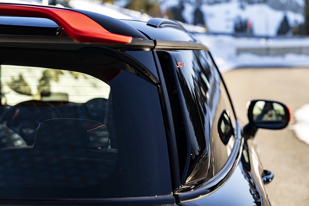 - Satu lagi yang menaikkan imej ialah sirip panjang JCW pada pilar-C yang memanfaatkan aliran angin pada sisi kereta.
