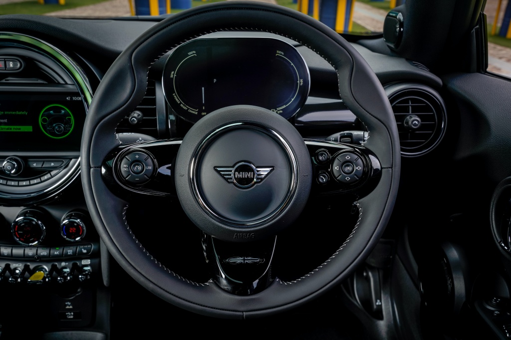 Port pengecas diletakkan di belakang dengan penutup lencana E. Kabin tampil mewah dengan kemasan kulit MINI Yours Walknappa menerusi kerusi kulit Cross hitam. Keselesaan memandu dibantu empat mod pemanduan: Sport, Mid, Green dan Green+.