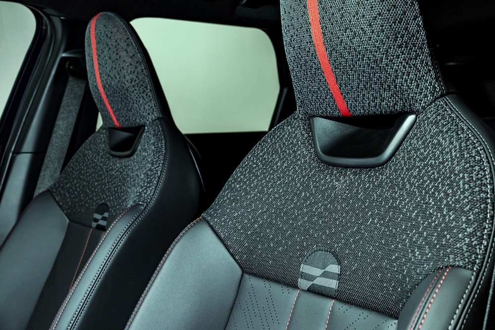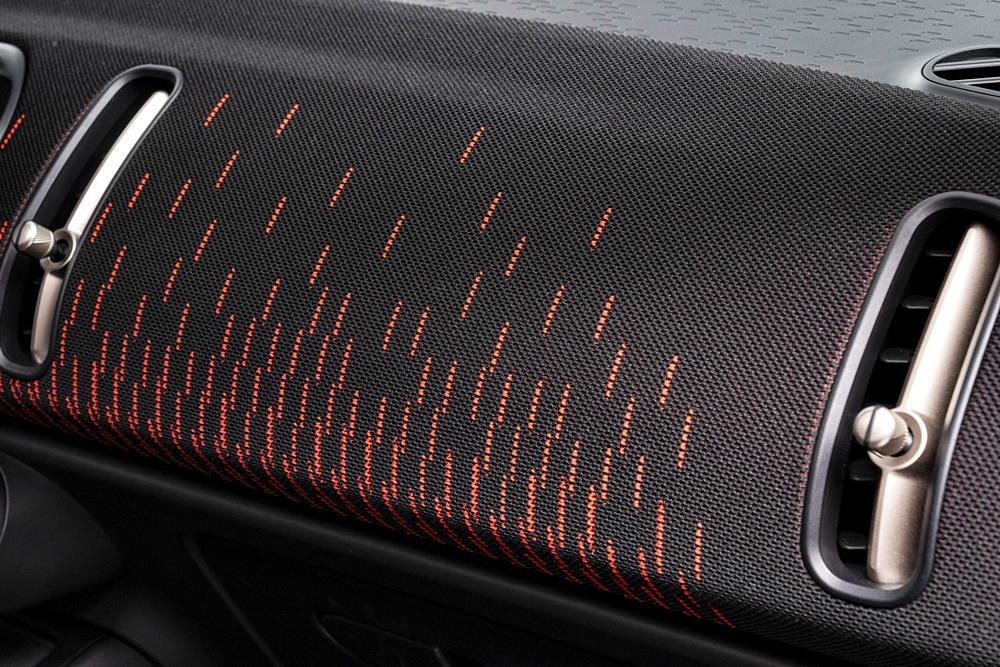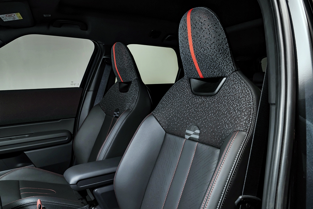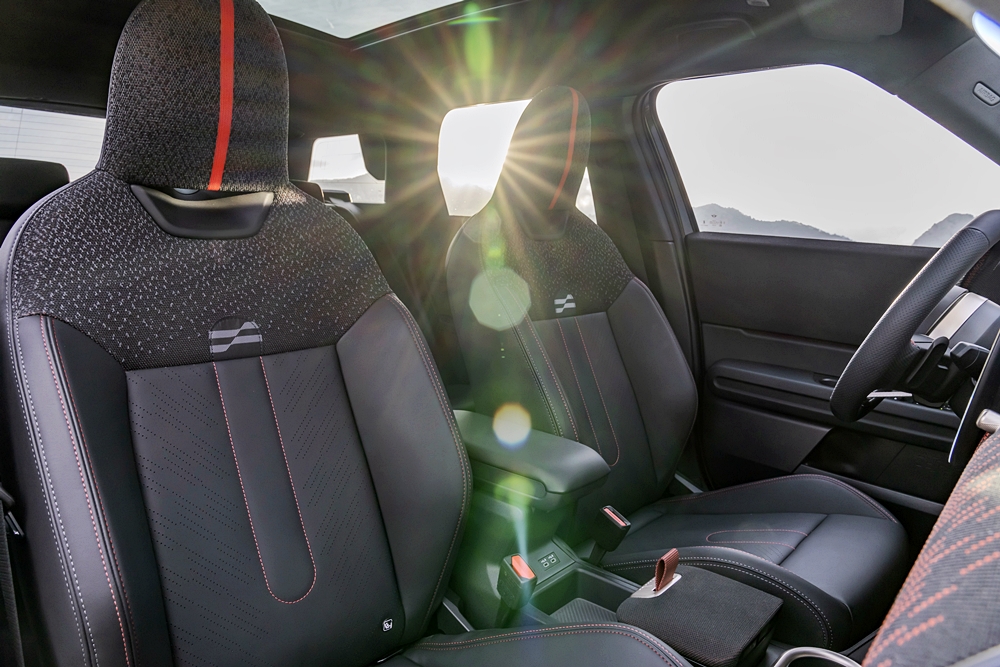 Ruang kabin menghidangkan papan pemuka balutan fabrik daripada poliester kitar semula yang direka ringkas berserta suis kawalan diatur sebaris.