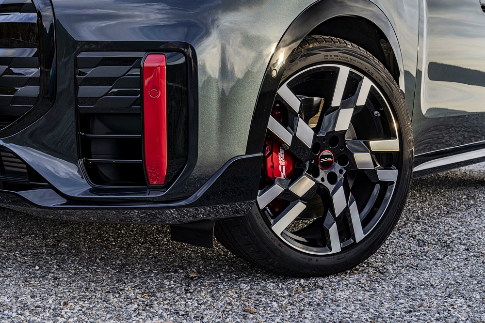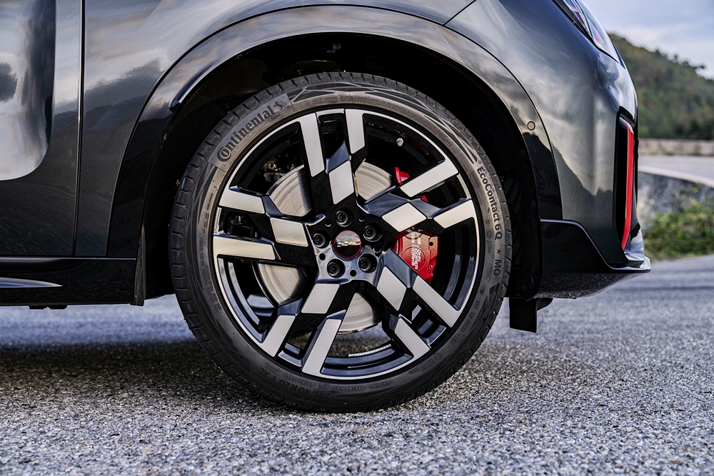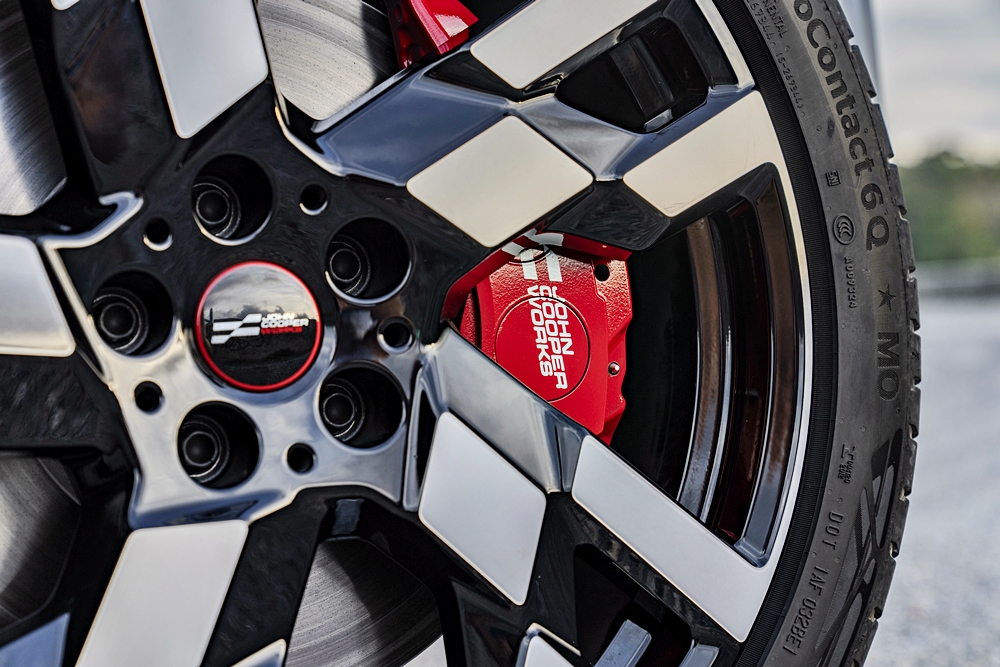 Selain itu, diameter tayar ditambah 30mm kepada 710mm, dan dilebarkan kepada 245mm untuk meningkatkan rasa go-kart yang tipikal untuk kereta MINI. Rim pula dioptimum untuk aerodinamik dalam saiz 19 dan 20 inci.