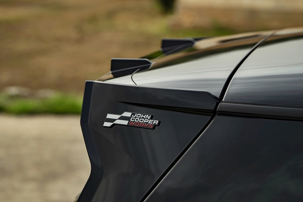 Dari segi rekaan, dari jauh identiti JCW sudah menonjol dan boleh dilihat pada bampar, skirt sisi dan paling ketara spoiler belakang.