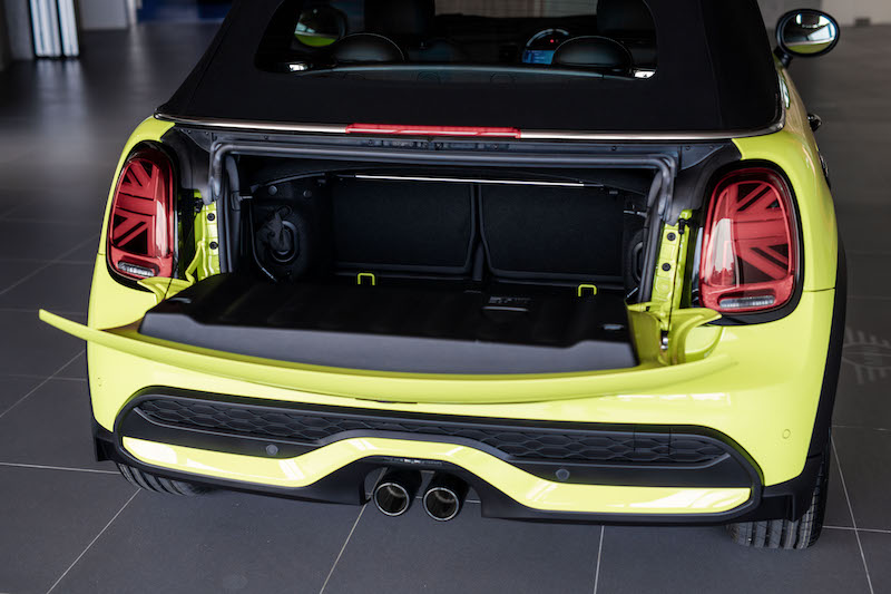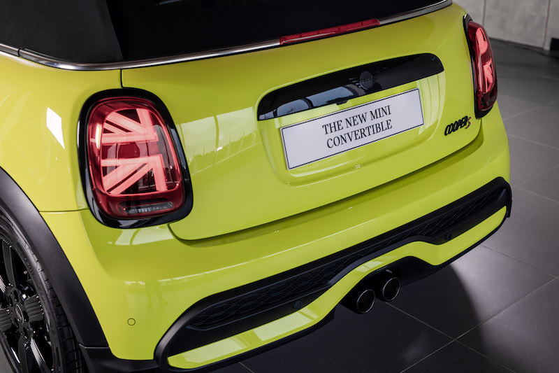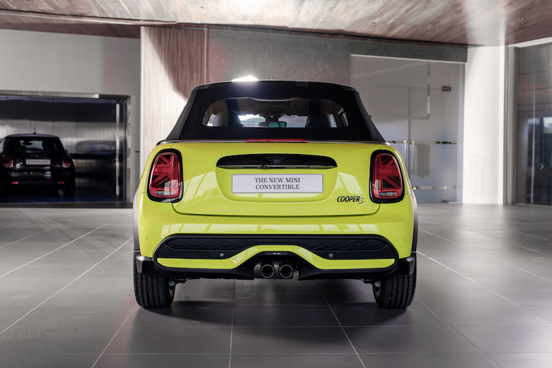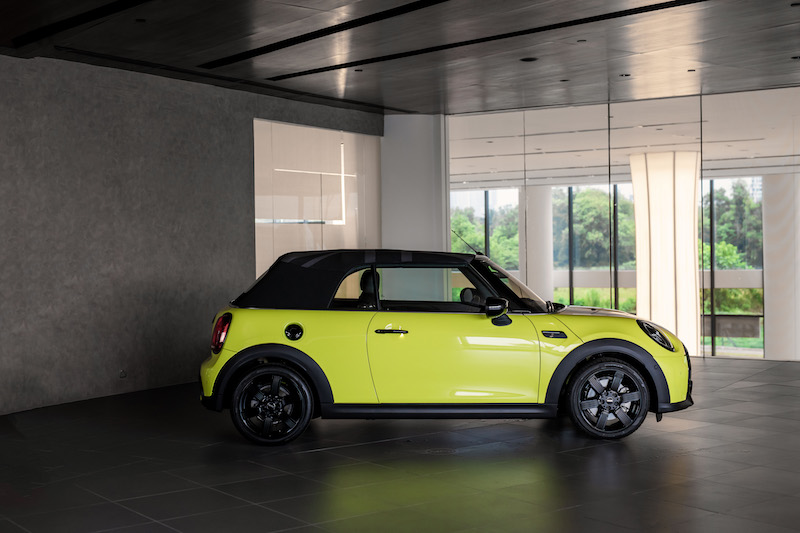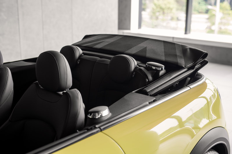 - MINI Convertible pula ditawarkan dalam lima warna eksklusif: Zesty Yellow (kuning), White Silver (perak), Island Blue (biru), Chili Red (merah) dan British Racing Green (hijau) dengan bumbung konvertibel MINI Yours Softtop.