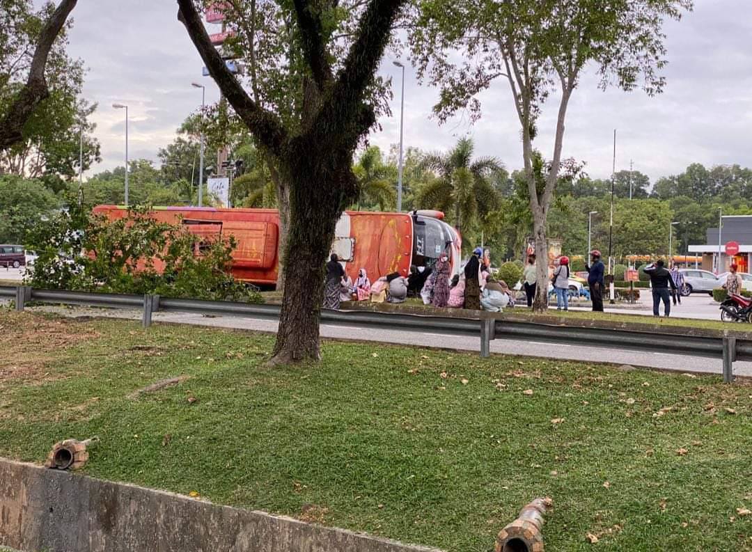 SERAMAI 17 pelajar Universiti Sains Islam Malaysia (USIM) berdepan detik cemas apabila bas dinaiki mereka terbabas dan melanggar sebatang pokok serta terbalik berdekatan sebuah restoran makanan segera di Bandar Baru Nilai, Negeri Sembilan, pagi tadi.