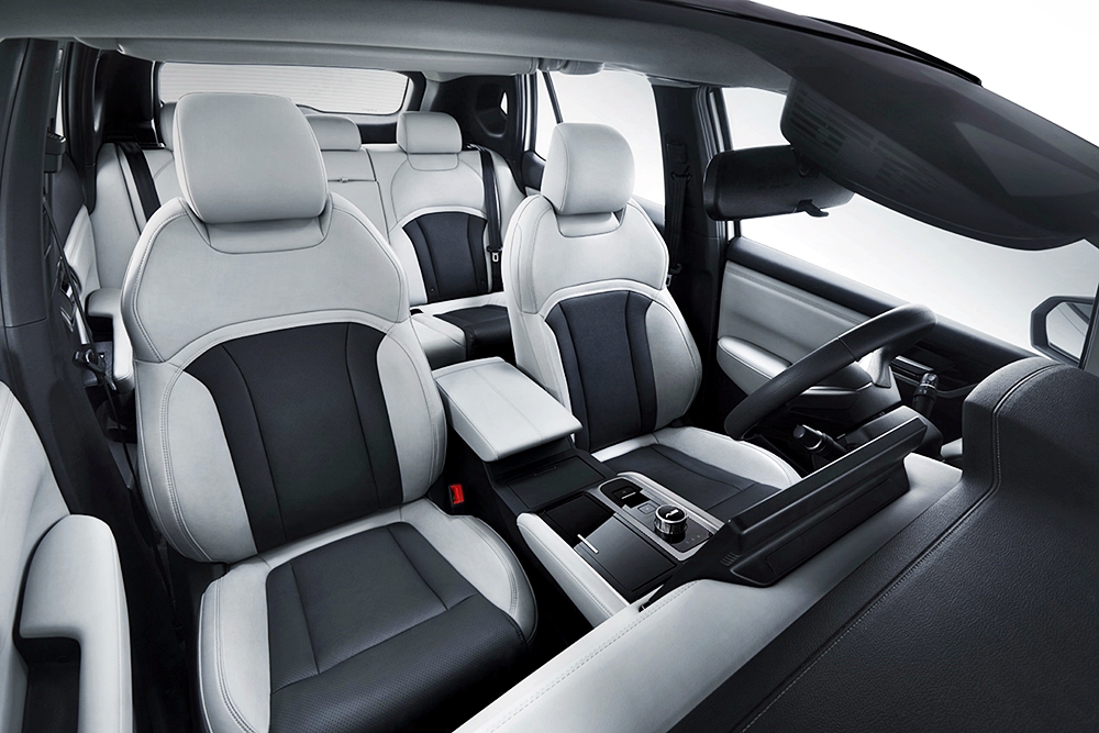 - Bagi mencapai agihan berat depan dan belakang ideal dan pusat graviti (CoG) rendah, bateri ditempatkan di tengah lantai, manakala motor elektrik diletakkan di depan.