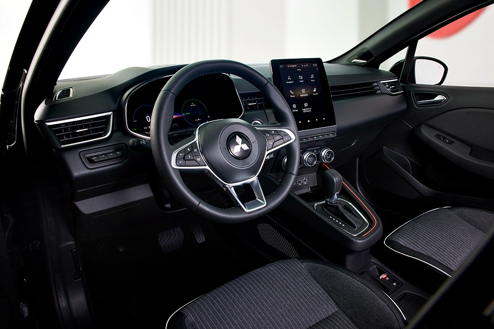 Bahagian belakang hampir mirip Renault Clio kecuali perbezaan bawah bampar, corak dalam lampu dan tulisan Mitsubishi sepanjang pintu but. Clio hanya ditawarkan dalam versi hibrid (E-Tech).
