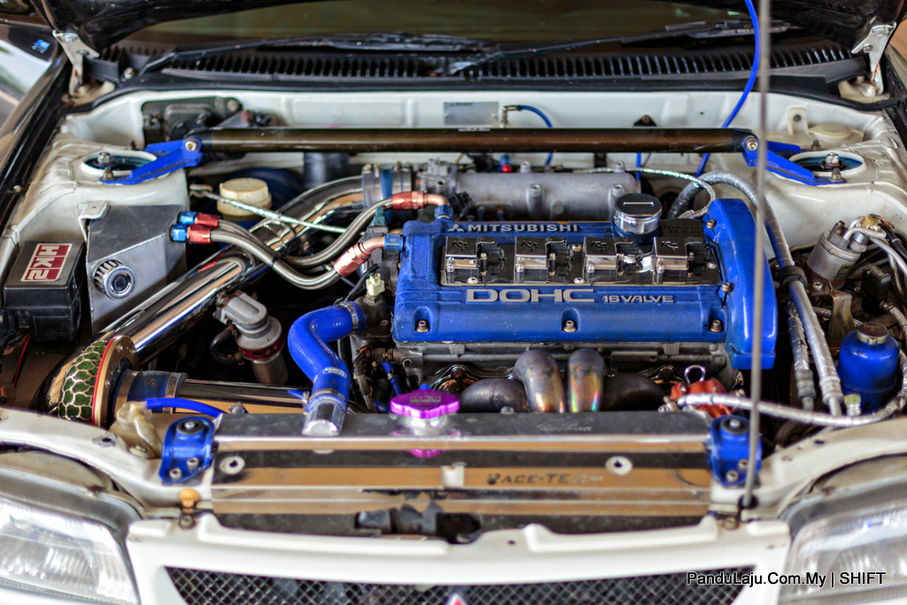 MODIFIKASI ENJIN 4G63T, , Stroker kits 2.2L, Piston Toyota 1JZ 86mm, Conrod Brian Crower I-Beam, Coil On Plug Race-Tech (Limited Edition), Turbo Garret GT35, Blow Off Apexi twin chamber, Wastegate Tial 44 mm, Injector Racetronic 1050cc, Fuel Regulator Sard, Oil Catch Tank custom, Intercooler Nissan Skyline R32, Radiator Aluminium AVS, Camshaft HKS 272 degree, Fuel Pump Internal Walbro 255 lph & External 2 unit Bosch 044, Surge Tank Custom, AEM Methanol kits, Race-Tech Cooling Plate (chrome edition), Stainless Steel Piping, Muffler HKS Silent Hi Power