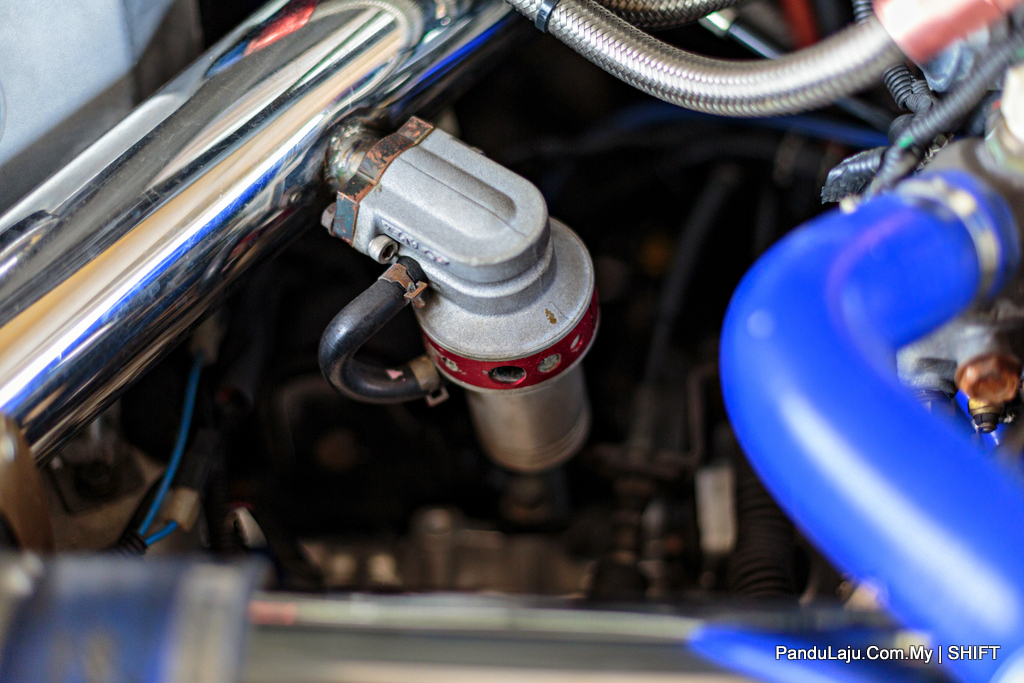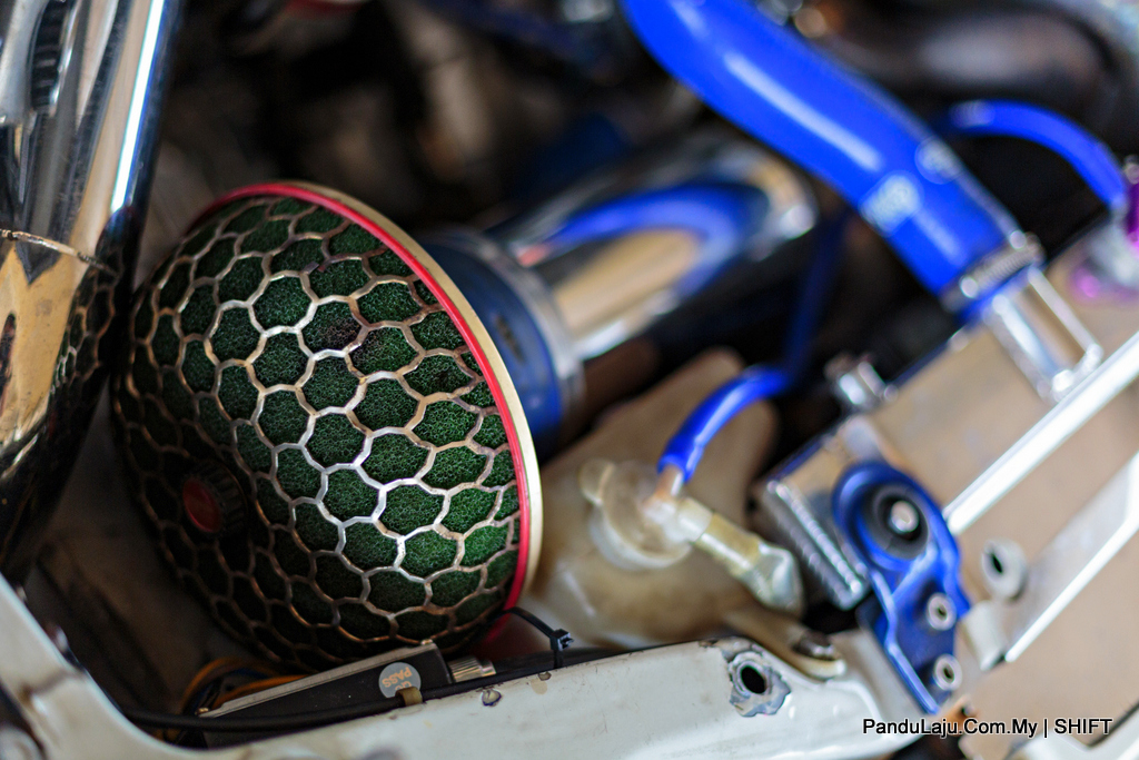 Bahagian kepala silinder enjin turut dirombak menerusi proses kejuruteraan ‘Port N Polish’ bagi memastikan aliran udara masuk dan gas keluar lancar. Tidak cukup dengan itu, komponen tersebut dinaiktaraf dengan menempatkan aci sesondol berdurasi tinggi 272° jenama HKS.