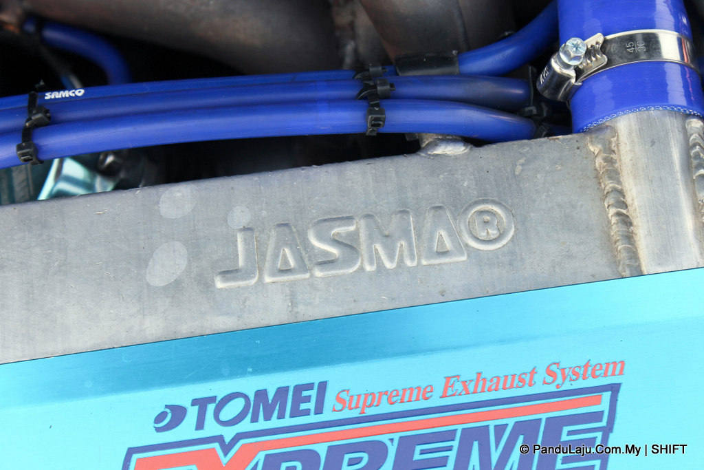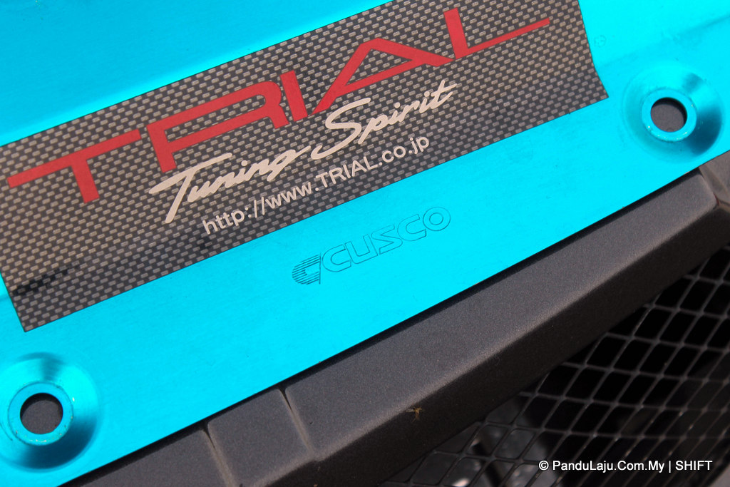 Plat penyejukkan radiator dari Cusco turut mengambil tugas asal manakala bahagian ekzos muffler 3’ menggunakan jenis ‘stainless steel’ dari Kakimoto.
