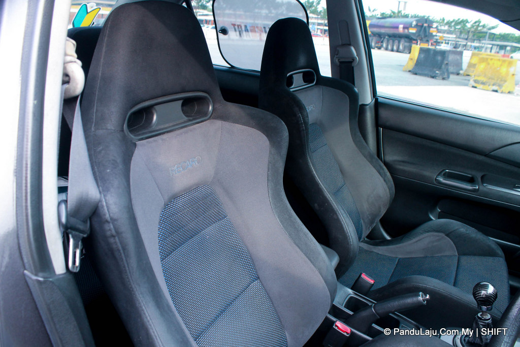 Tidak cukup dengan itu, bahagian meter turut ditukar dengan menggunakan dari model EVO 9. Namun tempat duduk Recaro masih dikekalkan. Untuk memantau kuasa sistem turbo semasa pemanduan, ACVR ‘Boost Controller’ dari APEXi menjadi pilihan empunya kereta.