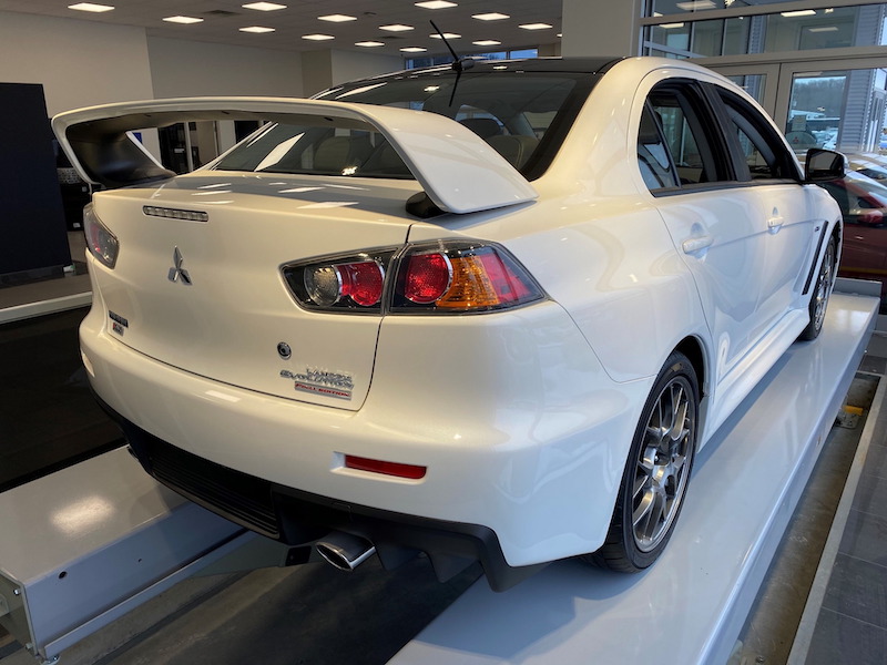 Unit itu berada di sebuah premis pengedar Baywest Mitsubishi di Ontario. Sebenarnya, ada 350 unit model EVO edisi terakhir ditawarkan di Kanada dan kereta yang masih belum dijual itu adalah unit ke-350. Berdasarkan laporan, ada 3,100 unit Mitsubishi Lancer Evolution Final Edition ditawarkan ke pasaran dunia.