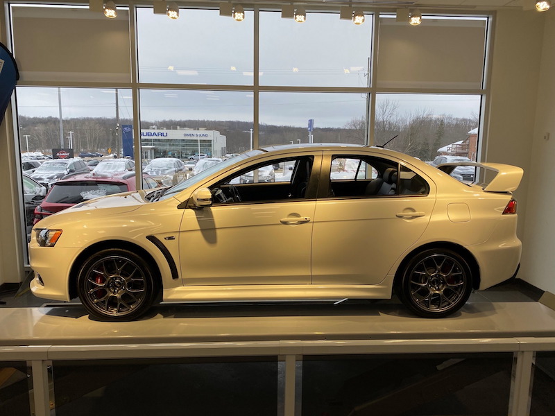 Unit itu berada di sebuah premis pengedar Baywest Mitsubishi di Ontario. Sebenarnya, ada 350 unit model EVO edisi terakhir ditawarkan di Kanada dan kereta yang masih belum dijual itu adalah unit ke-350. Berdasarkan laporan, ada 3,100 unit Mitsubishi Lancer Evolution Final Edition ditawarkan ke pasaran dunia.