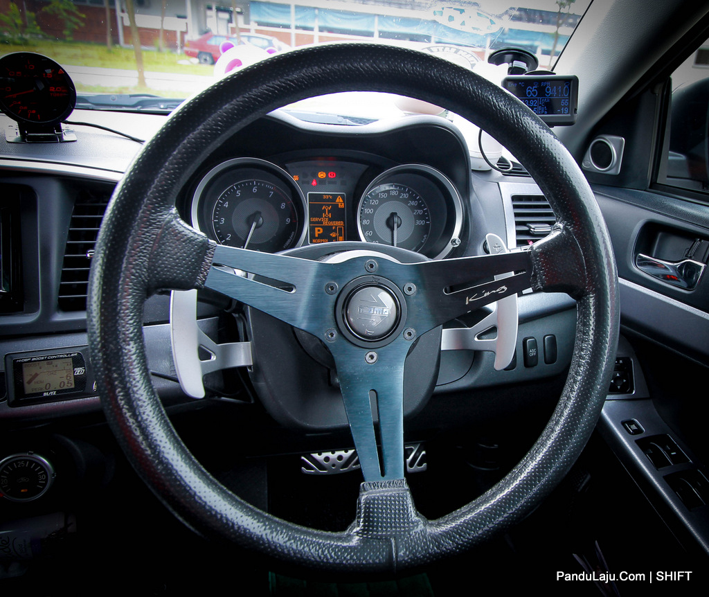 Rekabentuk luaran cuma ditambah bahagian gentian karbon untuk bonet depan Varis, fender Seibon dan lips Ralliart yang harganya pasti ‘menarik’. Jentera milik Amirul ini dinaik taraf oleh pihak Uber Garage, Carfeels di Singapura dengan begitu memuaskan sekali bersama talaan seikhlas hati daripada Gary.