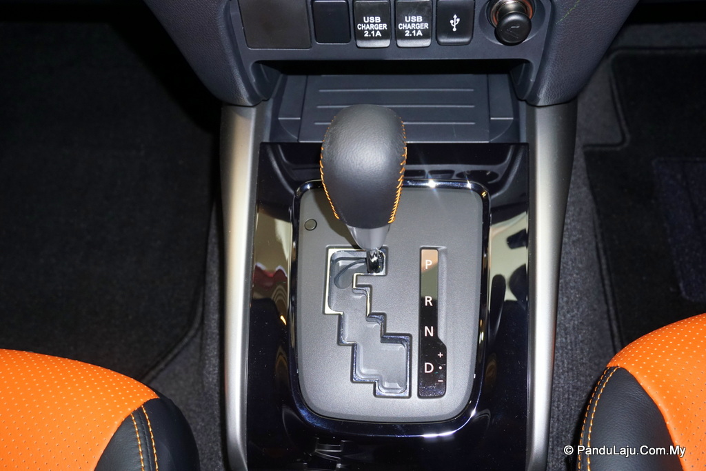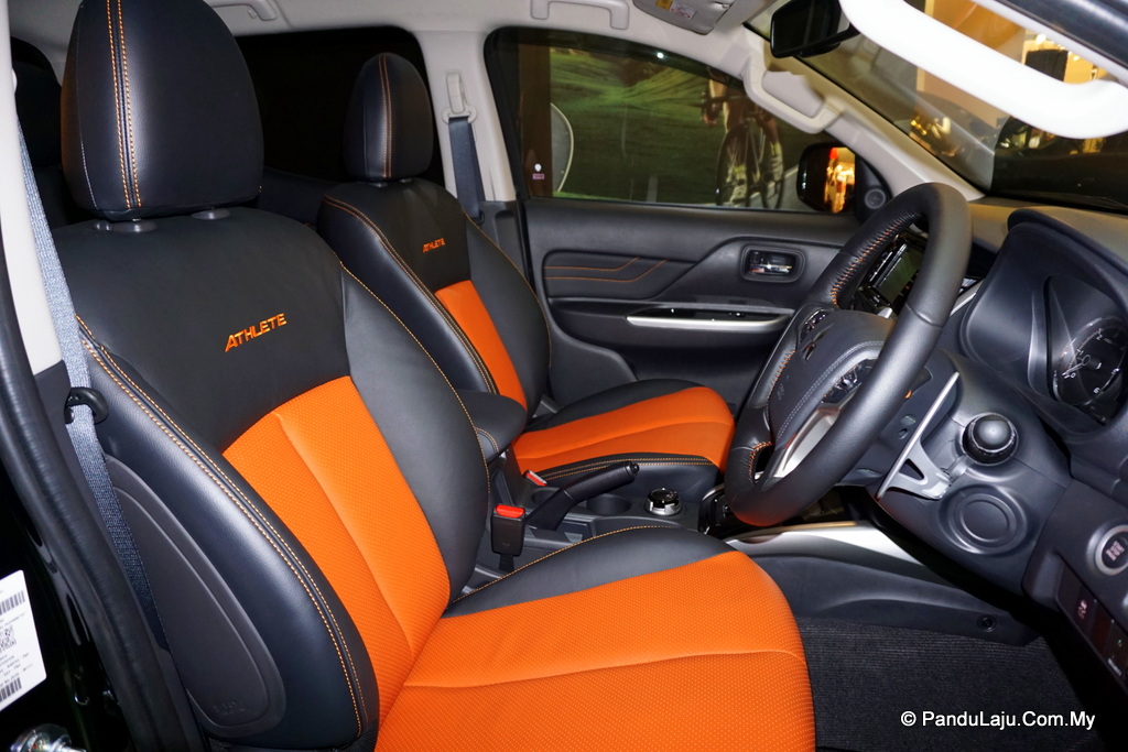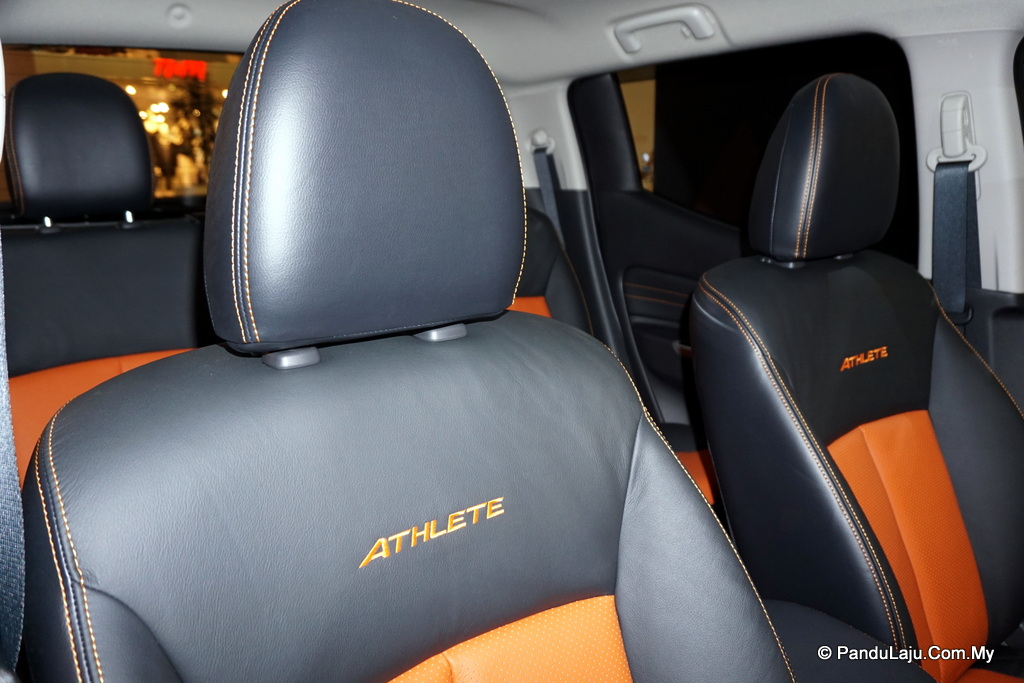 - Sulaman lencana ‘ATHLETE’ yang dipadankan jahitan benang oren pada stereng, tombol gear, kemasan pintu dan konsol tengah.