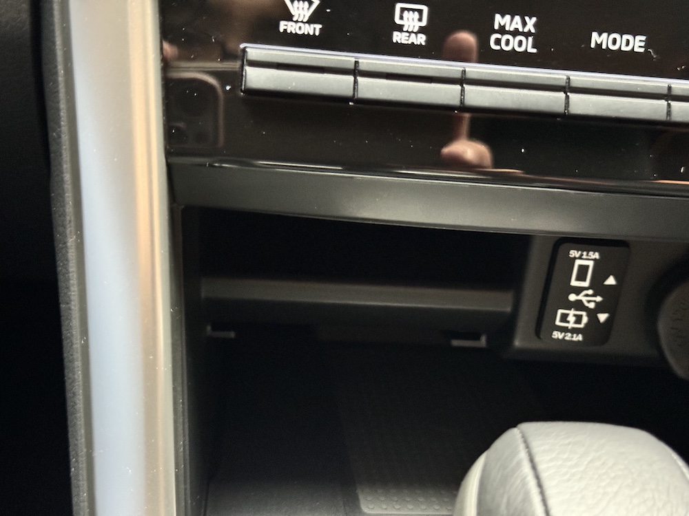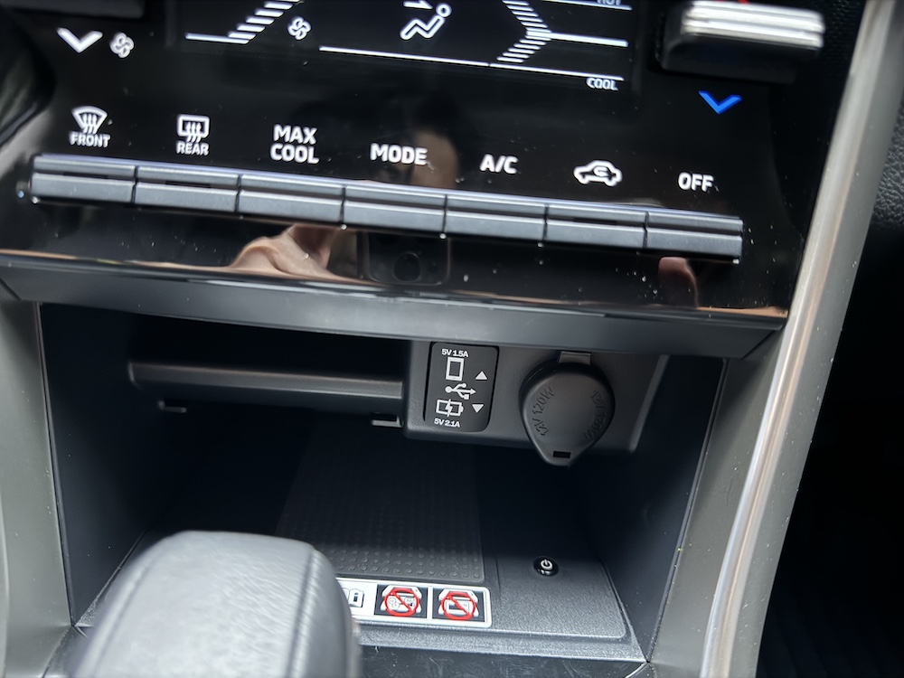 - Mempunyai pengecasan wayarles, empat port USB (dua unit USB-A dan USB-C di hadapan, dua lagi di belakang)