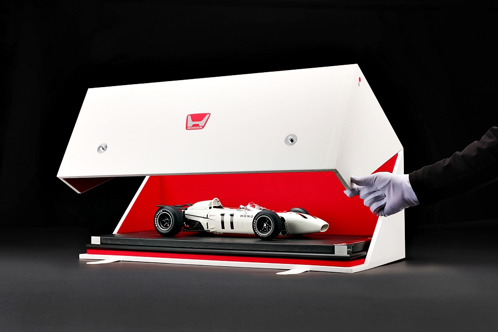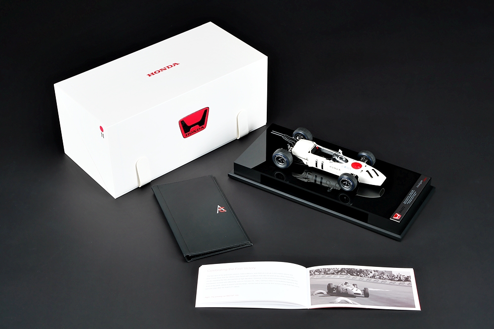 Setiap model skala disertakan dengan kotak pameran khas, sijil ketulenan, dan buku peringatan yang ditandatangani oleh Presiden Honda Racing Corporation, Koji Watanabe.