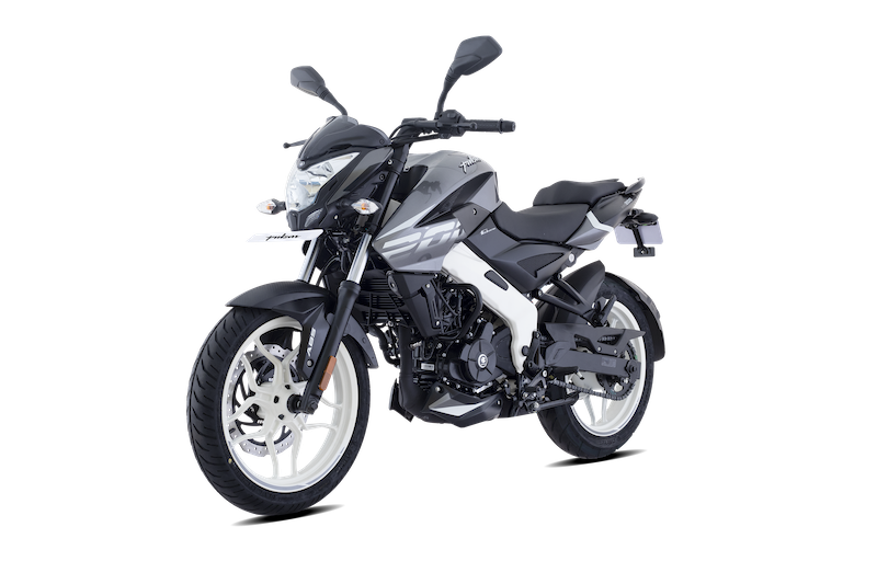 - Pulsar NS200 kelabu dikenakan rim hitam manakala dua lagi varian hadir dengan sport rim putih.