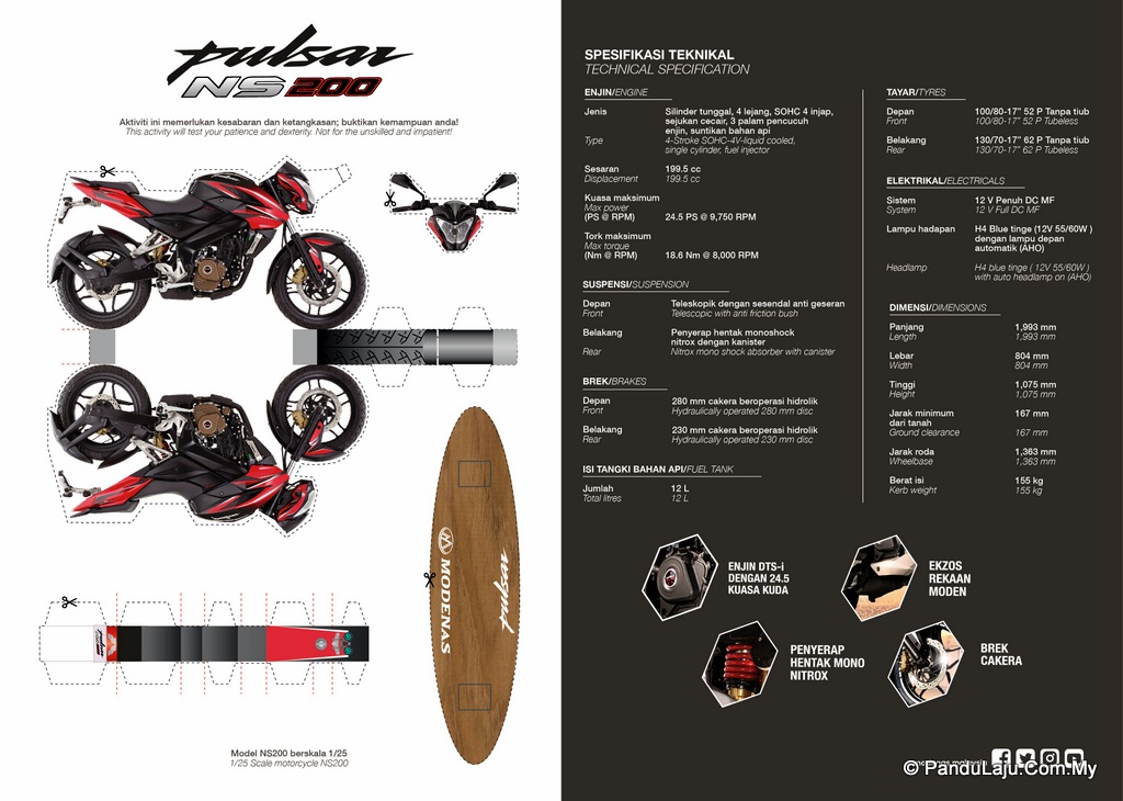 Bagi Modenas Pulsar NS200, ia mampu menghasilkan kuasa sebanyak 23.5PS pada 9,500rpm dan tork 18.6Nm (8,000rpm).