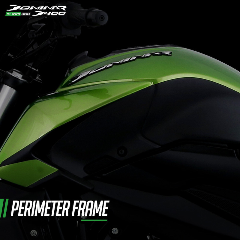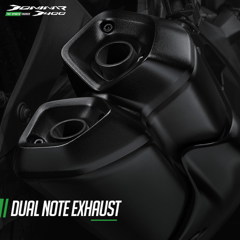 - Ditawarkan dalam dua warna pilihan: Charcoal Black (hitam) dan Savanna Green (hijau). Dominar D400 (2018) menawarkan dalam tiga pilihan warna: merah, hitam dan biru.