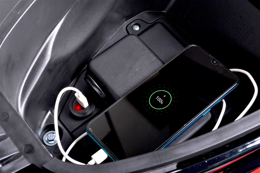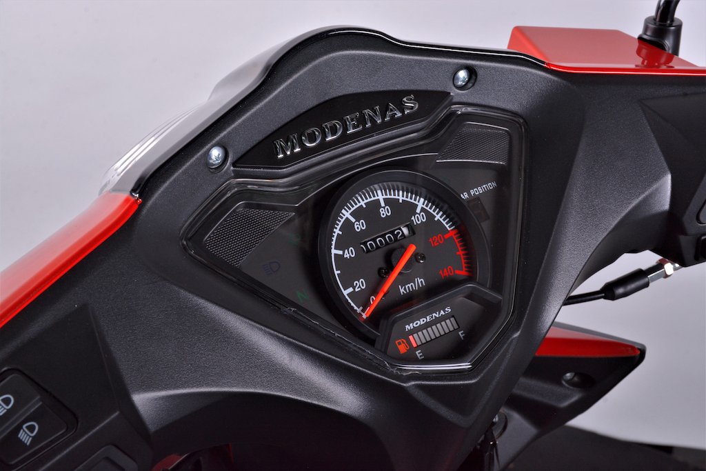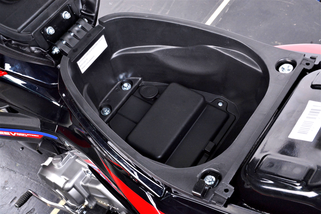 - Dilengkapi bar minyak dan indikator gear digital, soket pengecas USB dan ruang simpan bawah pelana berkapasiti 6.6 liter.