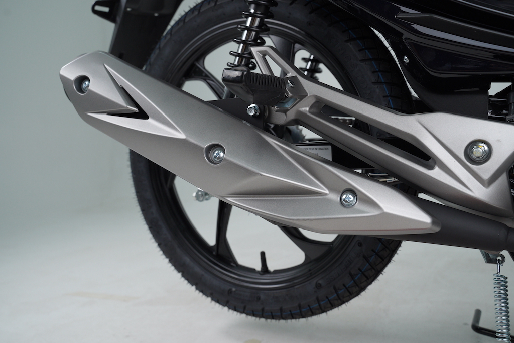 - Ciri lain ialah fork teleskopik di depan dan absorber kembar di belakang, rim sport dengan tayar tiubles, kemasan titanium grey (kelabu) pada penutup enjin dan pelindung ekzos.