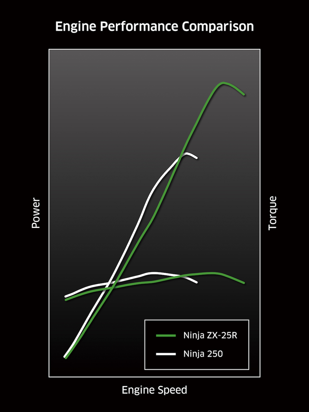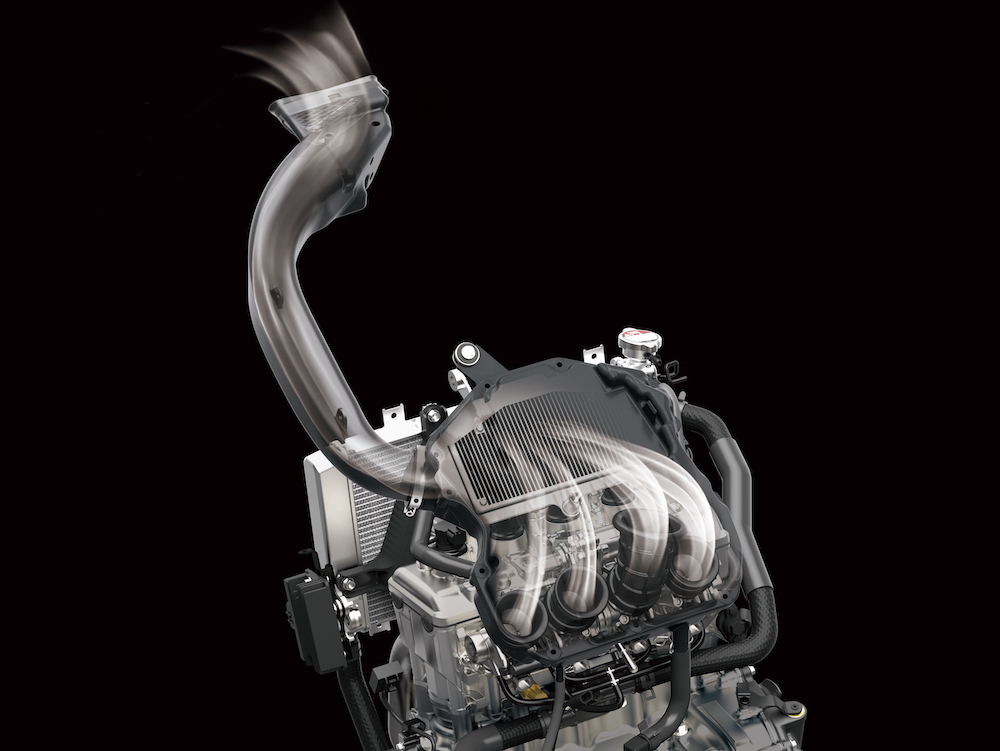 Dikuaskan enjin 4-lejang 4-silinder 16-injap sebaris 250cc DOHC penyejukan cecair dengan suntikan bahan api (FI), dan transmisi manual 6-kelajuan yang menghasilkan output kuasa 46.2hp (34.5kW) @ 15,500rpm dan tork 22Nm @ 12,500rpm.