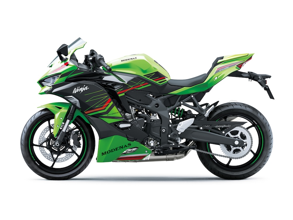 Sistem monoshock Ninja ZX-25RR khabarnya lebih ‘sedap’ kerana menawarkan mampatan dan redaman lantunan lebih cekap dengan ciri spring boleh laras. Pilihan warna pula hanya satu, iaitu Lime Green/Ebony (hijau Kawasaki).