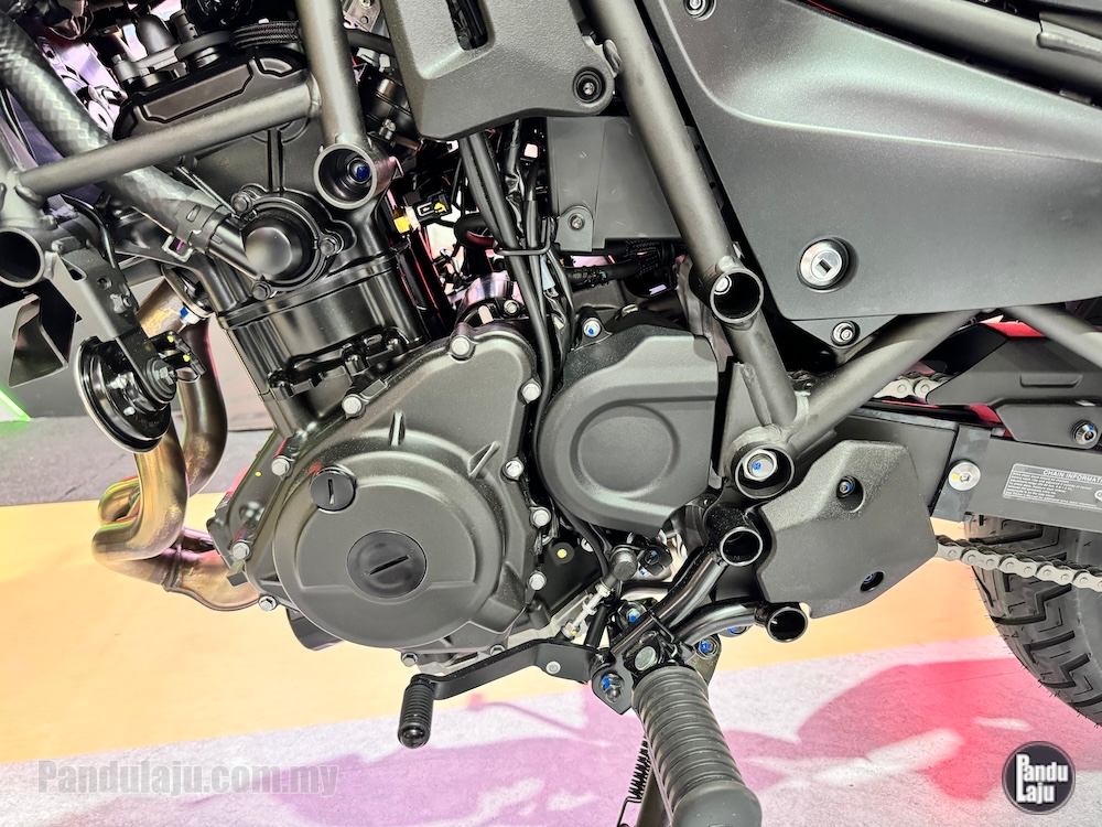 - Trenkuasa 4-lejang 2-silinder sebaris 451cc DOHC dengan sistem sejukan cecair dan suntikan bahan api, berkuasa 44.7hp dan tork 43Nm.